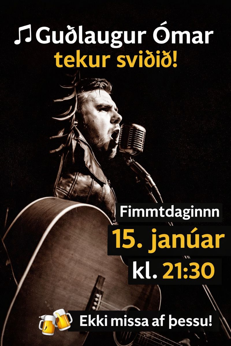 Keflavík The Dubliner, Hafnargata 30, 230 Keflavík, Keflavík, Keflavík, IcelandGuðlaugur Ómar – Trúbador Alla fimmtudaga er lifandi tónlist á The Dubliner – og þetta kvöld er það Guðlaugur Ómar sem tekur sviðið. Fimmtudagskvöld fyllist The Dubliner af hlýju, soul og alvöru pub-stemmingu. Guðlaugur Ómar heillar með lifandi tónlist, djúpri rödd og einstökum flutningi sem passar fullkomlega við notalegt andrúmsloft og kaldan Guinness í glasi. […]